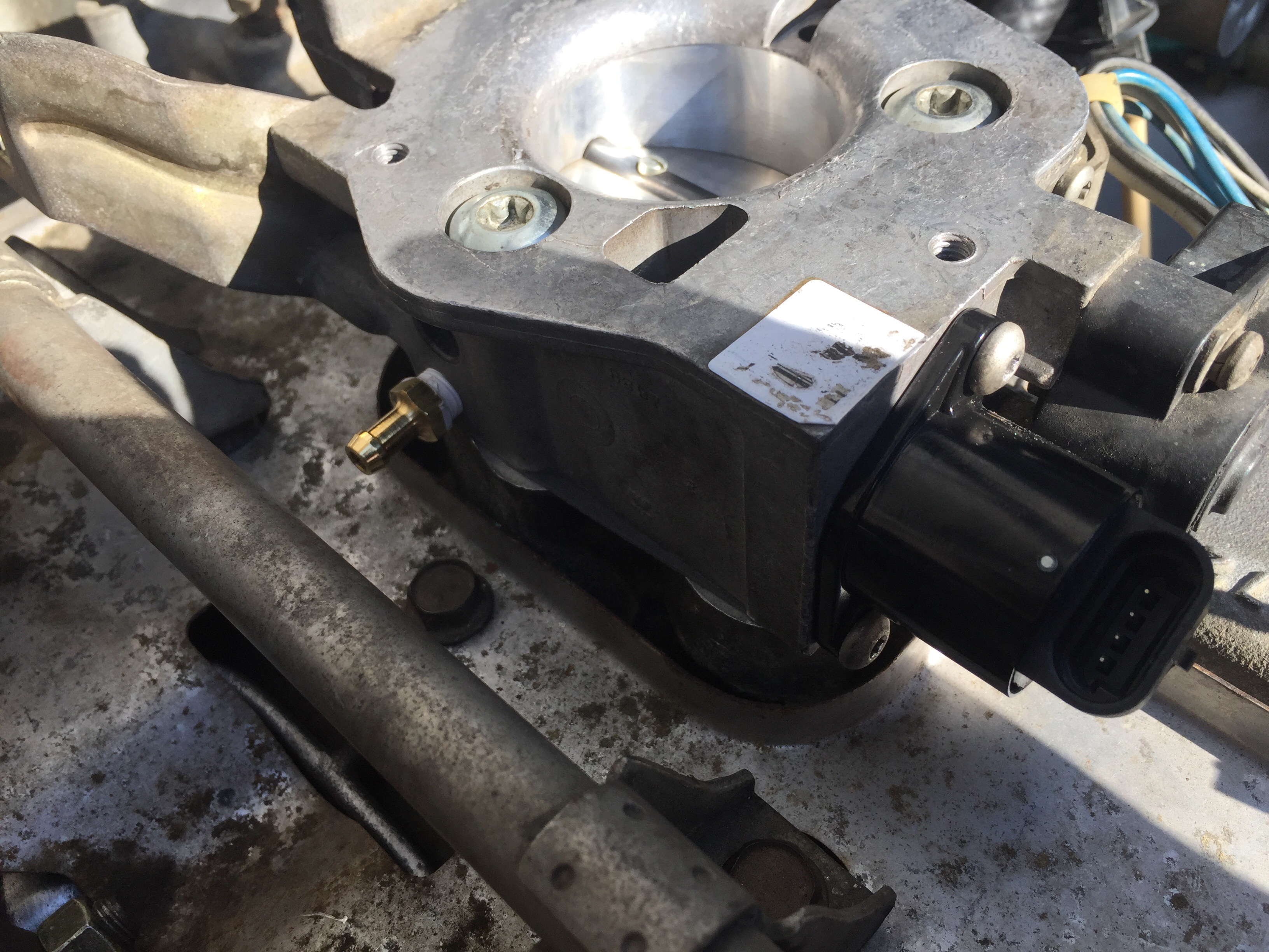 I took this time to pull the Idle Air Control (IAC) valve and replace it. Before installing the new valve, I did a full clean down on the throttle body. This included, cleaning the IAC port, cleaning the MAP vacuum port and cleaning the grime from the butterfly valve. I installed the new IAC valve and fitting for the vacuum line, put the new throttle body gasket on the intake manifold and installed the throttle body.