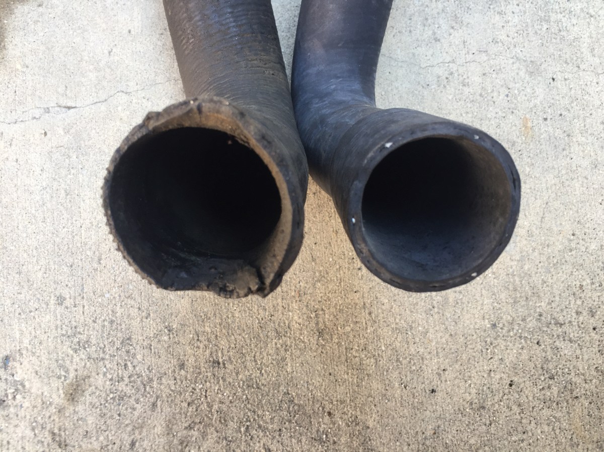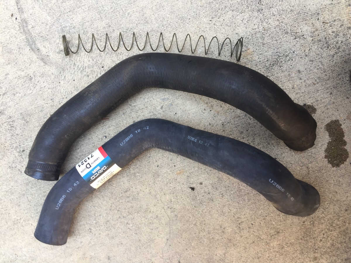 Once the radiator was installed, it was time to replace those worn out radiator hoses. The old hoses were bulging and seemed like they were paper thin.