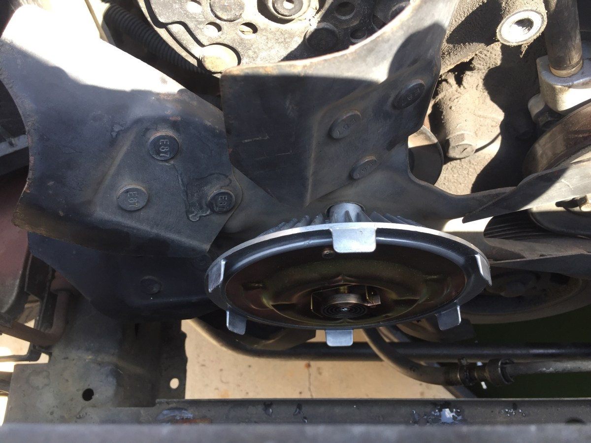 Simply unbolt the fan from the pulley. Once it’s off, turn the fan face down and take the 4 bolts off and remove the fan. PRO-TIP: When you remove the fan, pull it up and off and set it aside with the fan in the same direction you took it off. Do not flip the fan or you could inadvertently change the direction of the air flow into the engine bay from pulling air in through the radiator to pushing air out of the radiator. Bolt the fan to the new clutch and re-install. When reinstalling, don’t do what I did in the above photo. Another PRO-TIP: Install the fan shroud with the fan or you will have to unbolt the fan again to put it on.