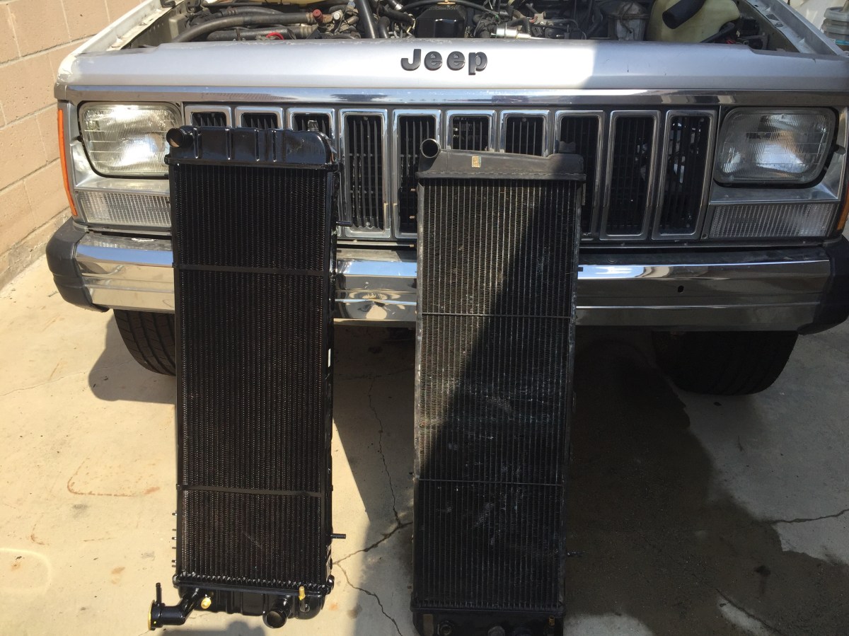 I installed the new lower and upper hoses and had to convert the old male style transmission cooling line to a female style transmission cooler line. This can easily be done by buying the solid tubing from your auto parts store that is for a 1991 to 1996 Cherokee.