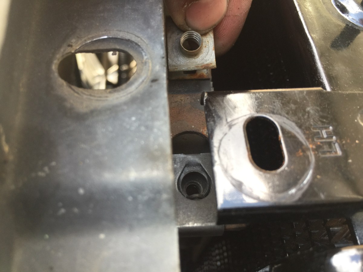 Now attaching the AC condenser to the radiator revealed a problem. First the original bolts were not long enough to reach the tinerman clips in the condenser. So some cheap custom modifications were done. First I removed the old clips and grabbed some new tinerman clips and screws from my elevator fixture bolt box for work. I attached the new tinerman clips to the condenser.