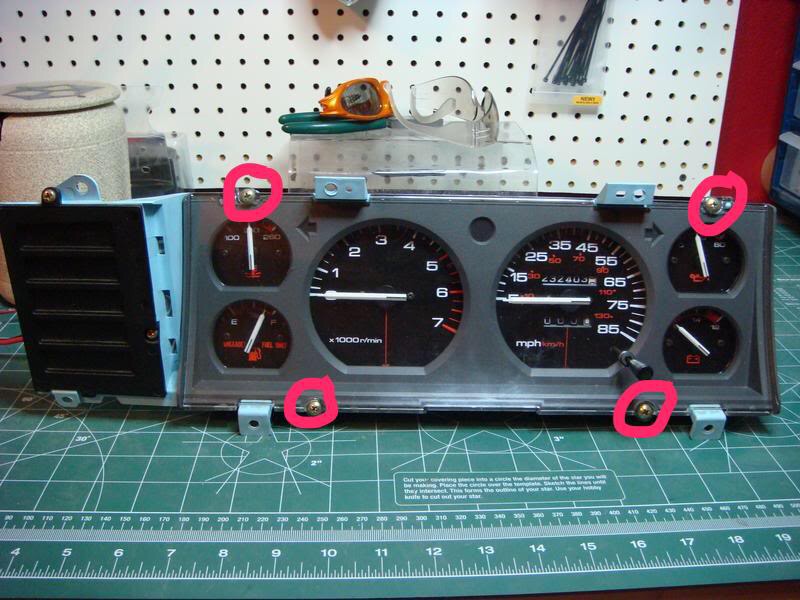 Now again this next part is also optional but I wanted my odometer on the new cluster to match my old cluster. It you don’t care about matching the odometers, just reinstall in the reverse order you removed it. If you want to match the odometers, disconnect the battery again and unplug the harness. Take the cluster to your work bench and remove the the four screws holding the plastic cover on.