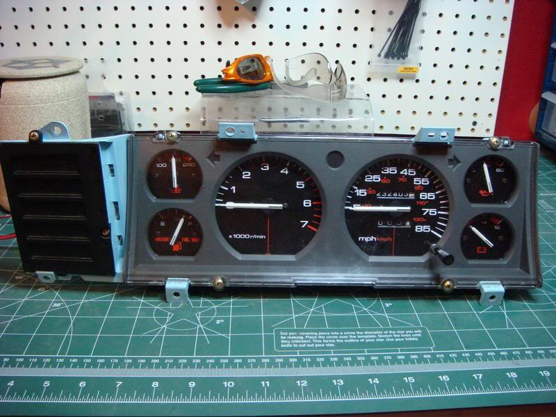 Seeing that this was the way it was installed, it gave me the opportunity to upgrade the whole instrument cluster to a full set of gauges. Now there are some different variations on these clusters. Base models are full dummy lights with only a speedometer and a fuel gauge. Mid-level sets have an oil pressure gauge, temperature gauge, charge gauge, fuel level gauge and speedometer. The full set has everything the mid-level comes with but also includes a tachometer.