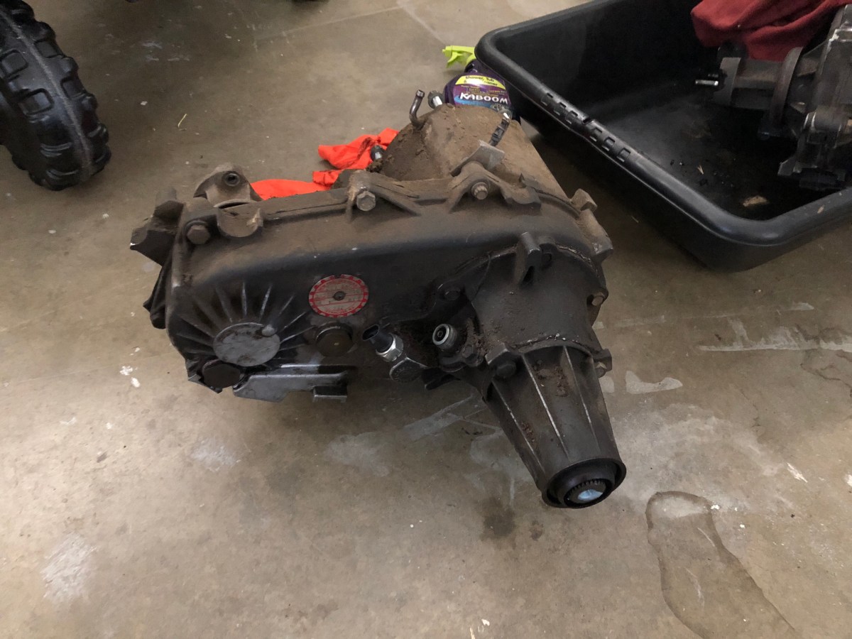 Having the front yoke off allowed me to pull the guts of the transfer case out later. Next, I removed the speedometer drive gear from the old housing.