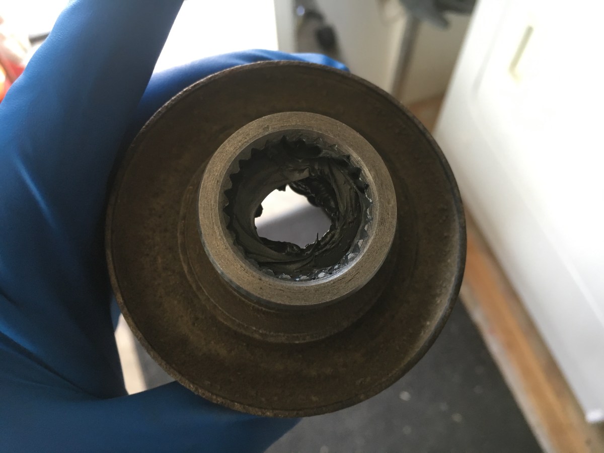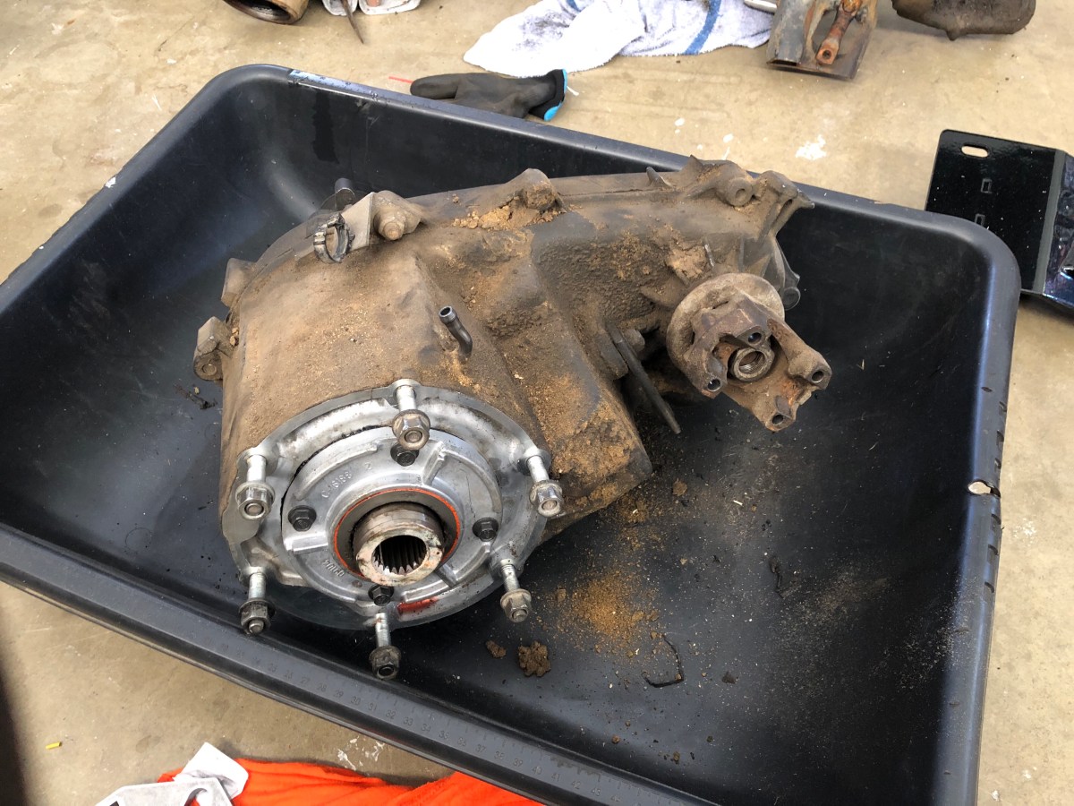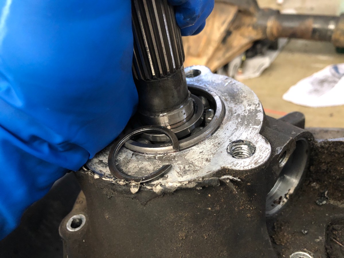 First step in the SYE swap was to remove the nut and front yoke. I used an 1-1/8″ socket to remove the nut then slid the yoke off.
