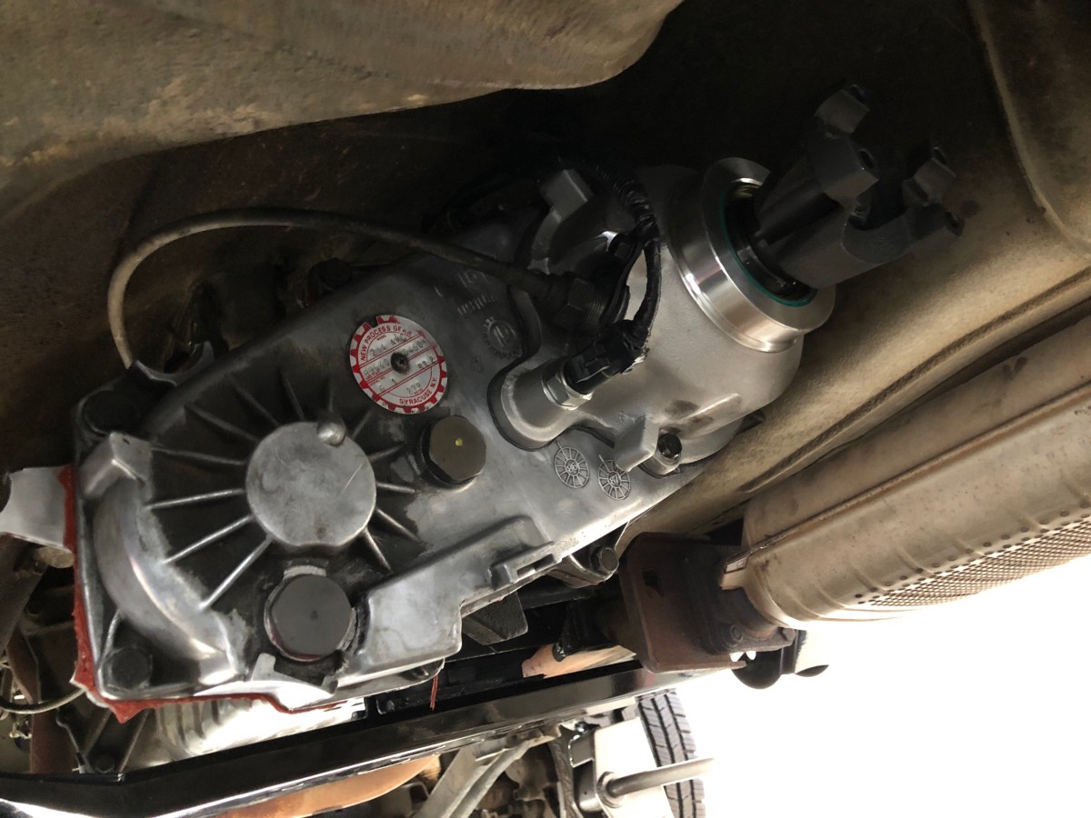 All that was left at this point was to install the case back onto the transmission and bolt it down. I installed a new transmission mount before installing the new crossmember just because I didn’t know the last time it was changed and it was only $15.00. With the crossmember holding the weight of the transmission and transfer case, I hooked up the speedometer cable, vent tube and selector switch connector. All that was left was to wait for my new driveshaft to come in the mail and install it. Making sure my driveline angle is correct to prevent vibrations while driving.