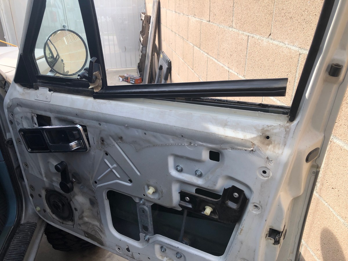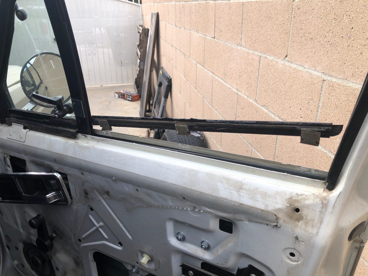Next, I removed the outer glass seal. This requires you to remove the lower, outer window trim piece along with the seal. There are four clips that hold the trim piece to the door.